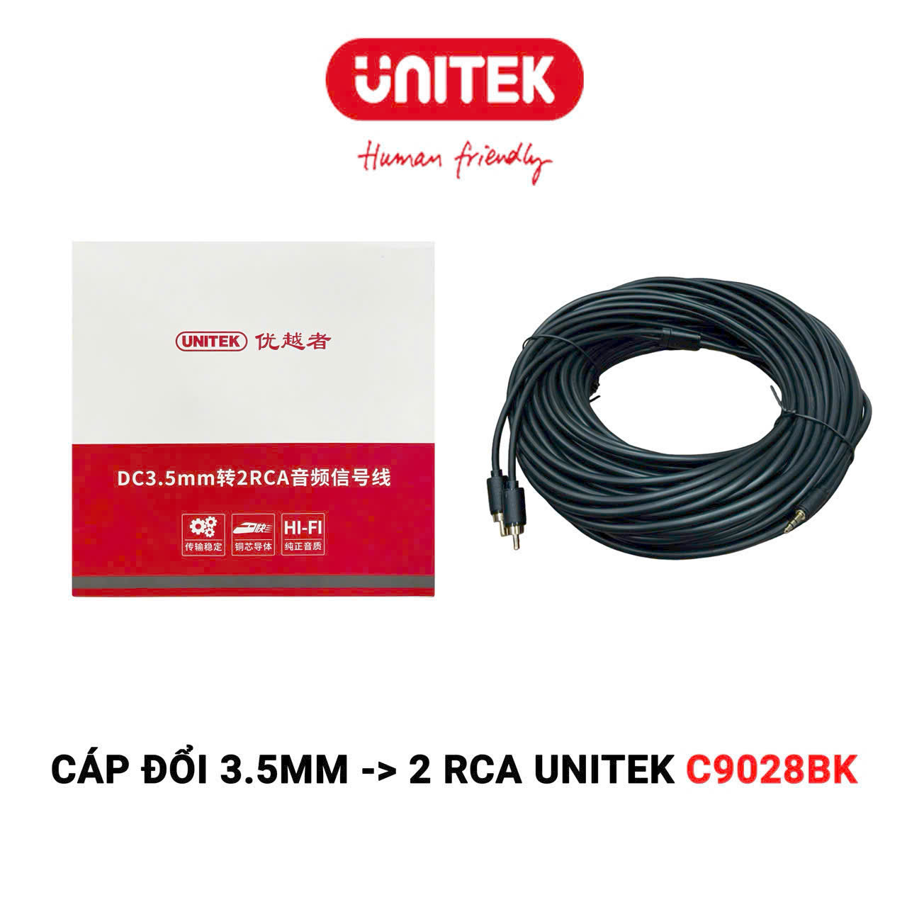 Dây cáp âm thanh 3.5mm ra 2 hoa sen RCA dài 30M Unitek C9028BK cao cấp