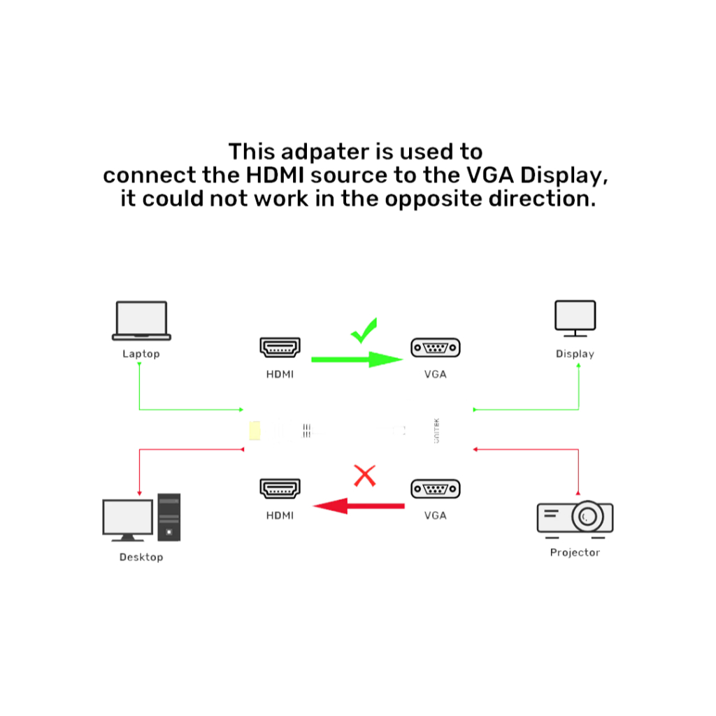 Hỗ trợ độ phân giải lên tới 1920 x 1080 @ 60Hz (1080p Full HD). Bộ chuyển đổi HDMI sang VGA UNITEK này cung cấp giải pháp tiết kiệm chi phí và dễ dàng để kết nối máy tính để bàn, máy tính xách tay hoặc các thiết bị khác có cổng HDMI với màn hình VGA như màn hình, máy chiếu hoặc TV. Thiết kế nhỏ gọn: Bộ chuyển đổi HDMI sang VGA di động được thiết kế nhỏ gọn kết nối máy tính, máy tính để bàn, máy tính xách tay hoặc các thiết bị khác có cổng HDMI với màn hình, máy chiếu, HDTV hoặc các thiết bị khác có cổng VGA; Hãy nhét thiết bị nhẹ này vào túi hoặc túi của bạn để thuyết trình kinh doanh bằng máy tính xách tay và máy chiếu hoặc mở rộng màn hình máy tính để bàn của bạn sang màn hình hoặc TV. Hiệu suất đáng kinh ngạc: Bộ chuyển đổi HDMI từ đầu đực sang VGA đầu cái hỗ trợ độ phân giải lên tới 1920×1080@60Hz (1080p Full HD) cho màn hình hoặc máy chiếu độ phân giải cao. Đầu nối HDMI mạ vàng của chúng tôi chống ăn mòn/mài mòn và cải thiện hiệu suất truyền tín hiệu, bộ giảm sức căng đúc của chúng tôi cũng bảo vệ cáp/dây dẫn khỏi bị căng quá mức và tăng độ bền của cáp. Độ ổn định vượt trội: Chip IC tiên tiến tích hợp chuyển đổi tín hiệu kỹ thuật số HDMI thành tín hiệu analog VGA.* Khả năng tương thích rộng: Bộ chuyển đổi HDMI-VGA tương thích với máy tính để bàn, máy tính xách tay, Ultrabook, Chromebook, Raspberry Pi, Intel Nuc, Roku, PS3, Xbox One, Xbox 360, Wii U, Set Top Box, TV BOX hoặc các thiết bị khác có Cổng HDMI.** *Lưu ý: Bộ chuyển đổi của chúng tôi không phải là bộ chuyển đổi hai chiều và không thể truyền tín hiệu từ VGA sang HDMI **Lưu ý: bộ chuyển đổi của anh ấy không tương thích với đầu phát Blu-ray và các thiết bị có cổng HDMI công suất thấp như PS4, Apple MacBook Pro có màn hình Retina, Mac mini và Apple TV ======================================================================================================================================== Kích thước: 46,2mm x 40,5mm x 15,5mm Độ phân giải tối đa:: 1920×1080@60Hz Đầu vào: HDMI Nam Đầu ra: VGA Nam Hỗ trợ âm thanh: không áp dụng Chất liệu/Màu sắc: Vỏ ABS/Trắng