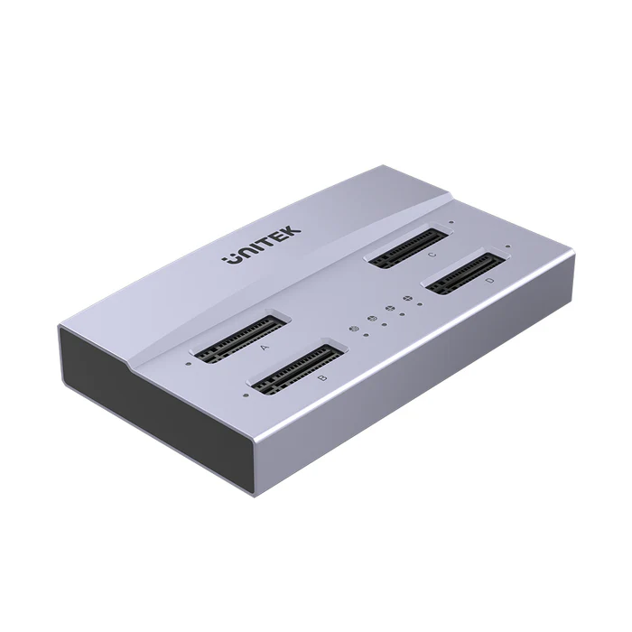Đế cắm SSD M.2 4 khay UNITEK USB4 hỗ trợ đọc và ghi đồng thời tối đa bốn ổ SSD M.2 với tốc độ lên đến 40Gbps. Sản phẩm có chức năng sao chép ngoại tuyến 1-đến-3 tiện lợi, cho phép sao chép dữ liệu dễ dàng từ một ổ SSD sang ba ổ khác mà không cần máy tính. Mở rộng dung lượng lưu trữ lên đến 32TB (4 x 8TB) với giải pháp đế cắm đa năng này. Được thiết kế với vỏ hợp kim nhôm bền bỉ, tản nhiệt tuyệt vời, sản phẩm có chức năng cắm và chạy (plug-and-play) và tương thích với nhiều định dạng SSD M.2 khác nhau, lý tưởng cho cả sử dụng tại nhà và văn phòng.